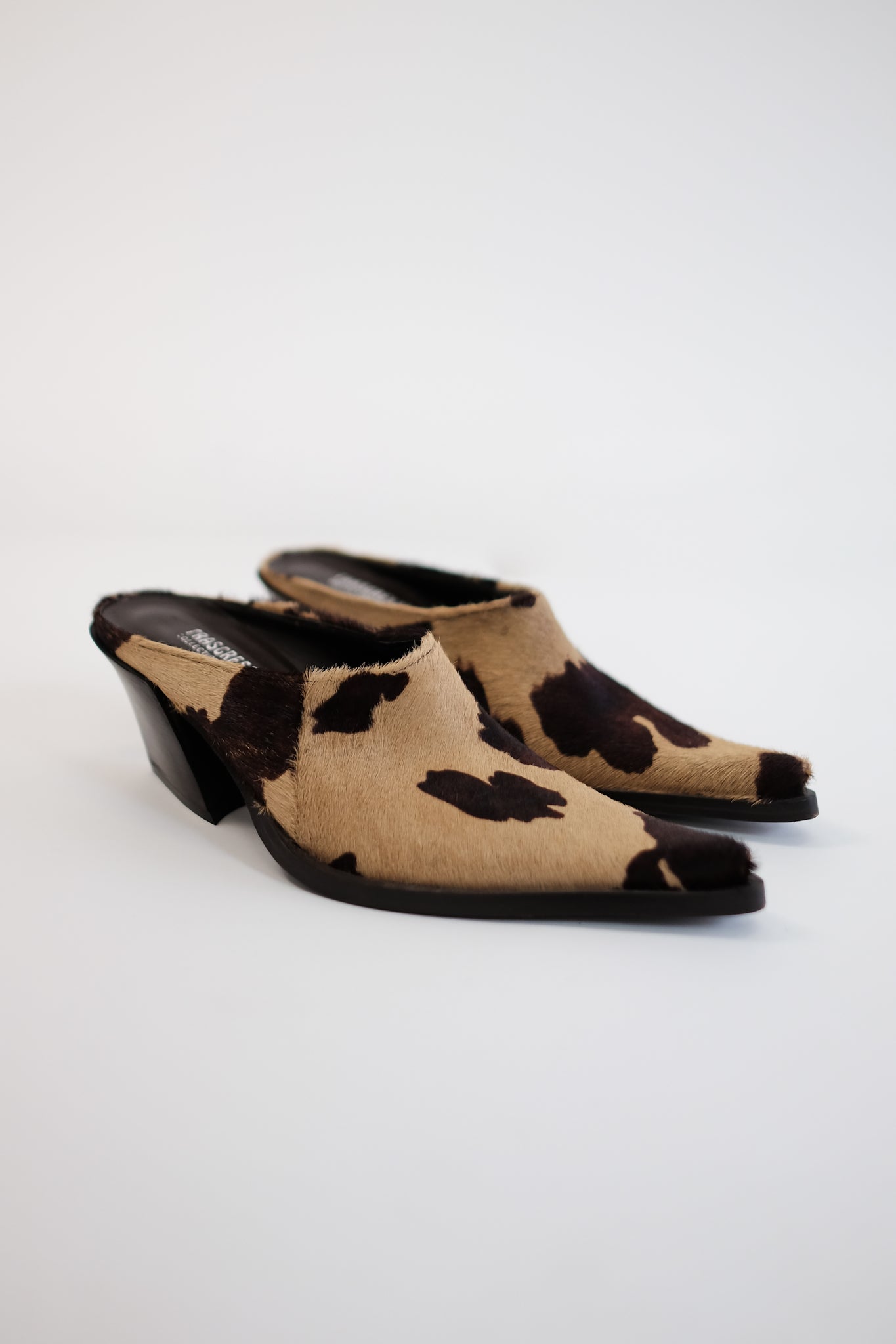 Raw hide Italian pony leather mules.